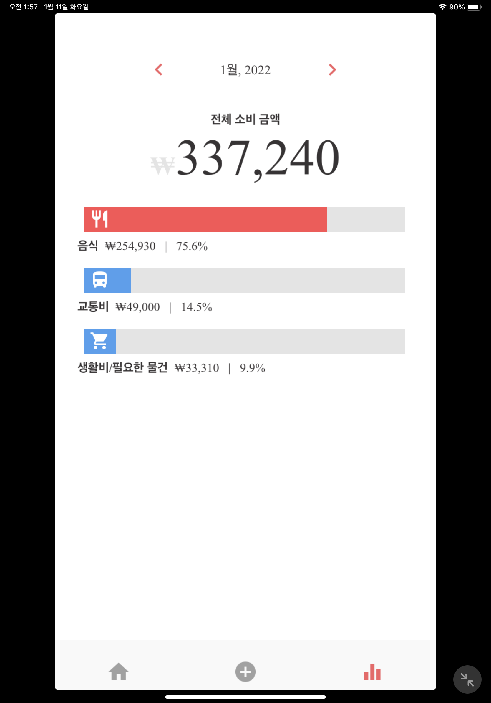 헉 ㅠㅠ 1월 1일부터 10일까지 33만원 썼네?;;;(올림해서 34만원ㅠ)